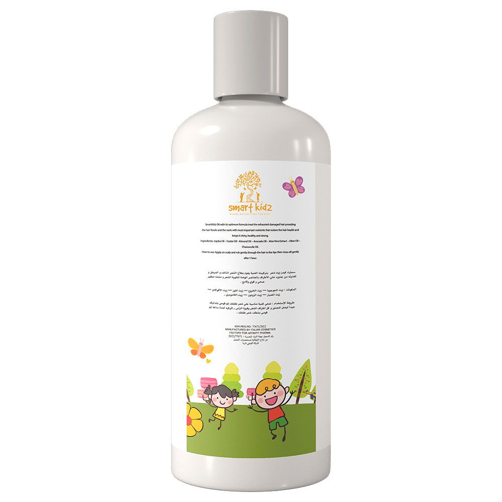زيت شعر سمارت كيدز غني بالعنصر الطبيعية المستخرجة من أنقي الزيوت الطبيعية حيث أنه يعتبر العلاج الأمثل لإعادة الحيوية للشعر المرهق و التالف لإحتوائه علي زيوت طبيعية تم دمجها في تركيبة متوازنة مثل (زيت اللوز الحلو – زيت الأرجان – زيت دهن النعام – زيت الخروع – مستخلص زبدة الكاكاو ) وغيرها من المواد الطبيعية التي تقوم بالحفاظ علي علاج و إصلاح الشعر التالف الناتج عن عوامل الجو أو إستعمال منتجات غير صحية